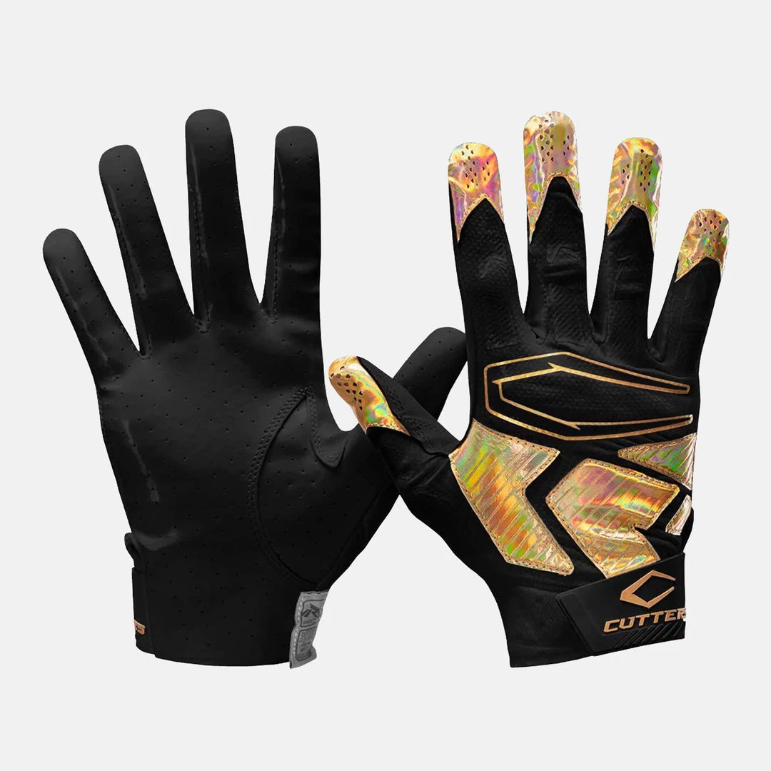 The exclusive Cutters Rev Pro 4. Iridescent Receiver Glove. This Cutters flagship Football Receiver Glove is used by elite pros every Sunday and features unmatched Air C-TACK grip, the original performance football grip that has set the standard for advanced grip innovation for over 20 years. Our newest Cutters receiver glove pushes the limit of stick on every catch and is perforated for better breathability and cooling performance. The best receivers in the world love the grip along with the exceptional combination of feel, support and stability, which deliver confidence that’s also very comfortable.